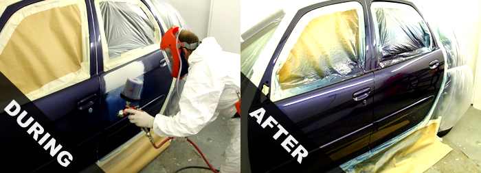 We have our spray booth and car paint mixing system. By using the manufacturers paint code it enables us to match any vehicles paint as close as possible to the original factory finish.